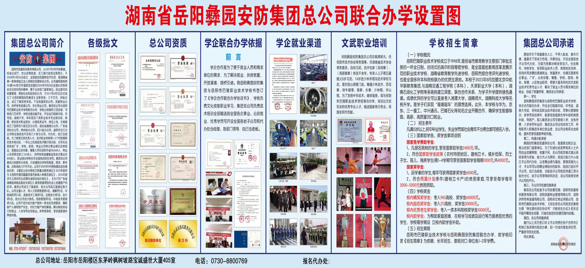 2017年6月正式成立了《岳陽(yáng)彝園安防集團(tuán)》,下設(shè)《武星保安公司》、《武星物業(yè)公司》、《洪橋勞務(wù)派遺公司》、《保鏢保安武術(shù)職業(yè)培訓(xùn)學(xué)校》等子公司