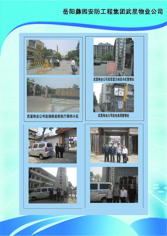 岳陽武星物業(yè)管理有限公司繼岳陽市武星保安公司于2012年2月成立,武星保安公司是經(jīng)省公安廳批準成立的民營保安公司,為滿足廣大客戶的迫切要求,公司能為客戶提供保安、物業(yè)整體服務(wù)。武星物業(yè)公司技術(shù)力量雄厚,有電梯維修工程師、園林綠化師、水電安裝工程師、消防等專業(yè)技術(shù)人才。為了更好地服務(wù)社會、培育特種人才,公司與岳陽市巴陵職業(yè)技術(shù)學校聯(lián)合辦學,開設(shè)了保鏢保安武術(shù)散打班、物業(yè)管理班、園林綠化技術(shù)班、水電維修班、禮儀班,現(xiàn)有專業(yè)學員幾百名。公司為各黨政機關(guān)、社會團體、廠礦企事業(yè)單位、金融機構(gòu)、房地產(chǎn)開發(fā)商居民住宅、賓館、學校、娛樂場所等提供人力資源和技術(shù)防范服務(wù)。目前公司有幾十家大客戶,公司優(yōu)質(zhì)的服務(wù)得到了客戶的好評。現(xiàn)經(jīng)公安廳市公安局批準成立了保衛(wèi)科、督查應(yīng)急大隊,為客戶不定時的服務(wù)和回訪,公司有一批業(yè)務(wù)精、能力強的管理人才,為客戶提供高質(zhì)量的服務(wù)。武星保安物業(yè),保您家安樂業(yè)。